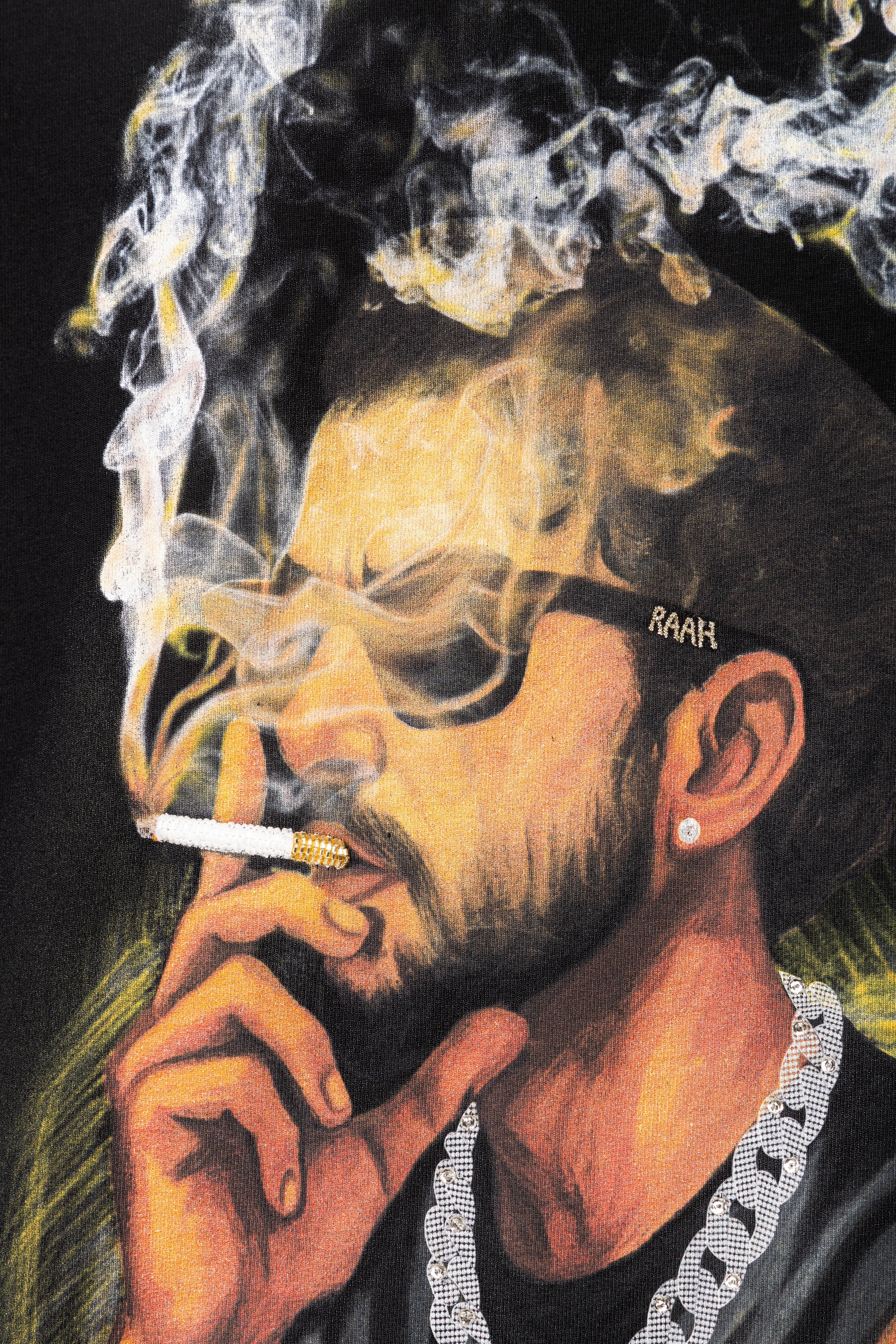 Cigarette in the artwork is subtly highlighted, adding depth to the scene